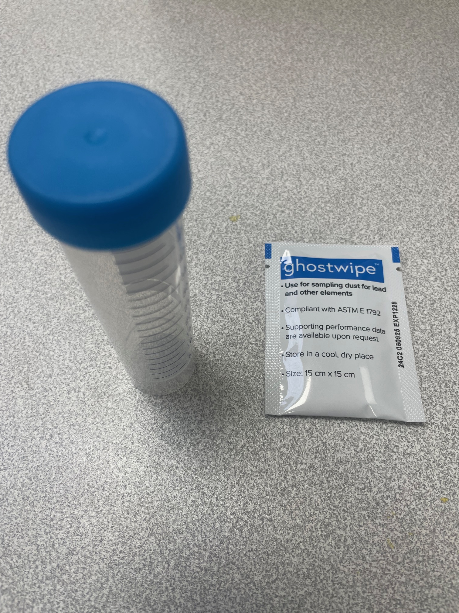 Lingette et tube de prélèvement plomb dans poussière